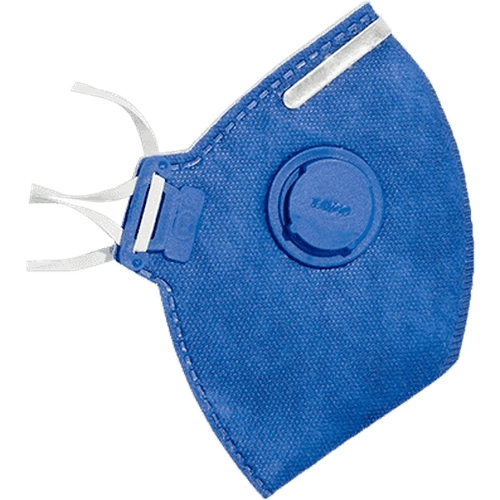 Respirador purificador de ar tipo peça semifacial Filtrante para partículas classe "S" PFF2, em TNT e Meltblown, com válvula de exalação, formato dobrável.